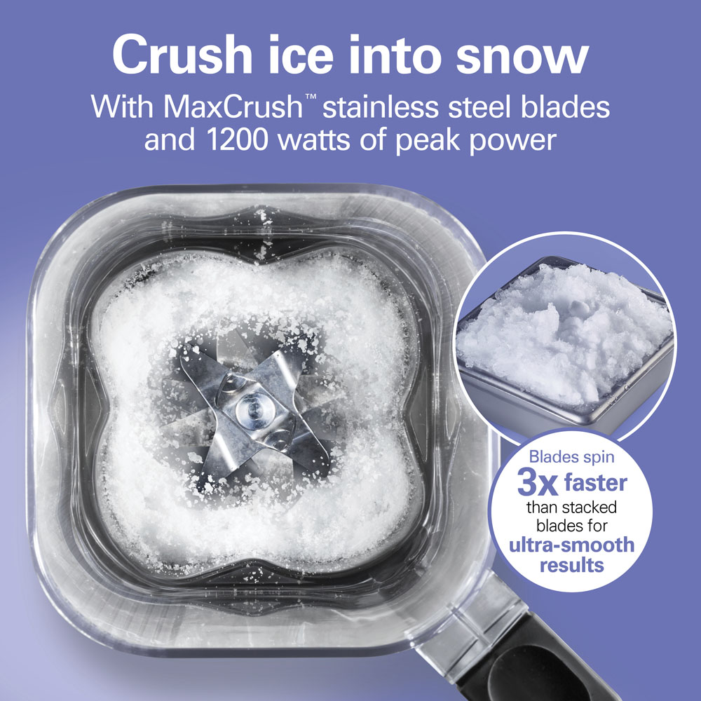 The MaxCrush stainless steel blades on this ice blender spin 3 times faster with 6 optimized points of interaction to crush, liquify and pulverize ingredients for ultra-smooth results.