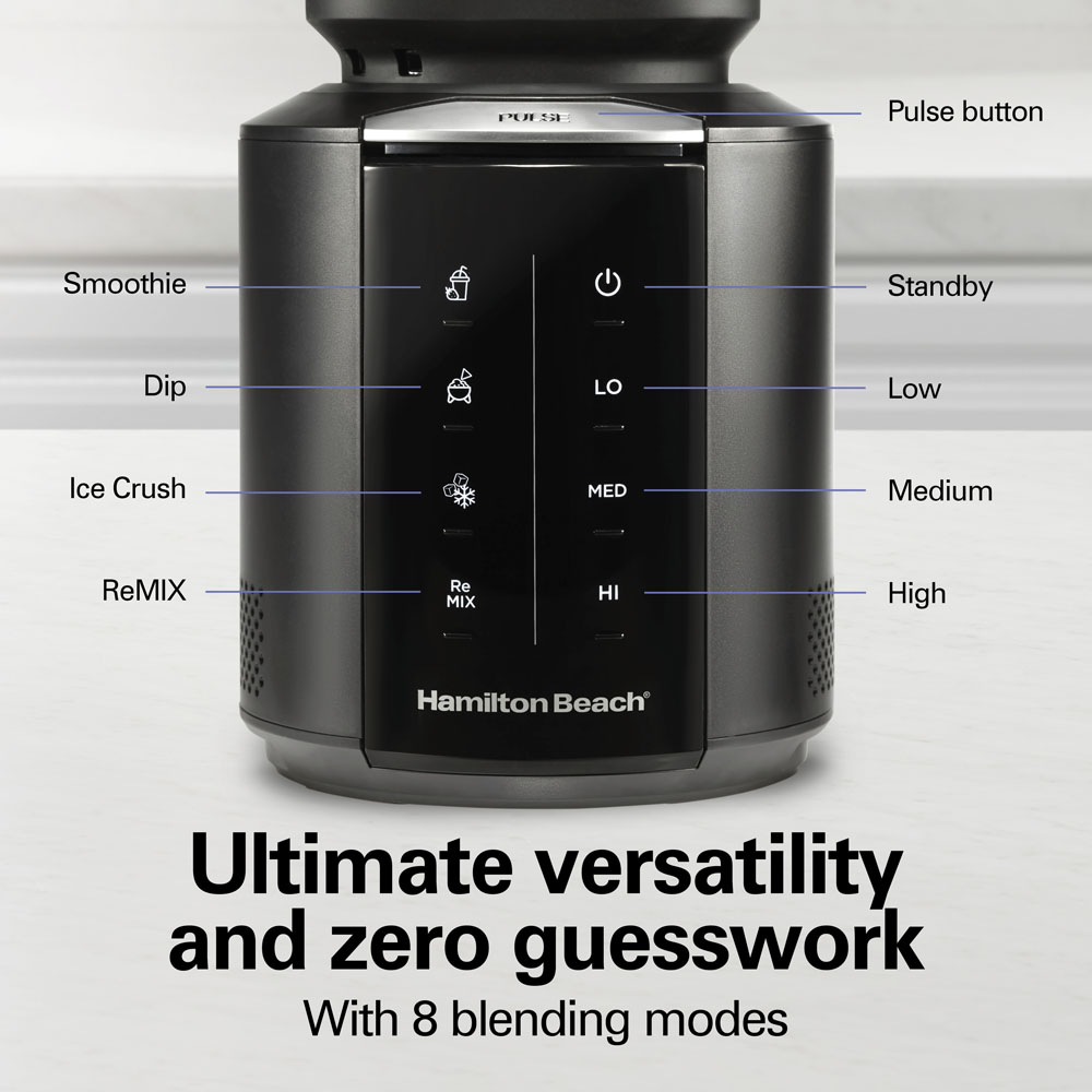 Save time, enjoy fresh flavor longer and reduce waste. With the Hamilton Beach® Blend & Store System, you can blend once and enjoy fresh, just-blended flavor for up to 3 days. Simply push the FreshPress™ lid down after blending in the 52 oz. jar to force air out and lock in the freshness. Use it for making a large batch of smoothies, protein shakes, frozen drinks, dips, dressings and more. From day one to day three, everything stays fresh. The innovation doesn’t stop there.