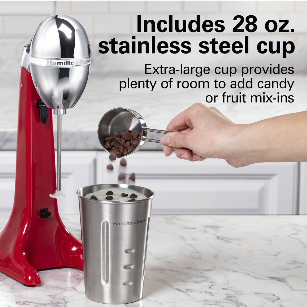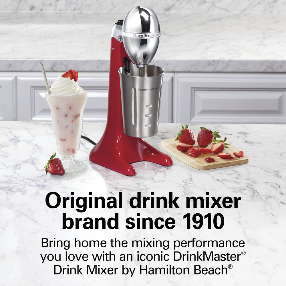 Bring more fun into your kitchen with the Hamilton Beach® DrinkMaster® Drink Mixer. It lets you treat your family and friends to restaurant-quality shakes, cold treats, coffee drinks, protein drinks and more. In addition to creating a wide variety of tasty drinks, the DrinkMaster Drink Mixer is also perfect for making homemade dressings, beating eggs for omelets and mixing fluffy batters.
