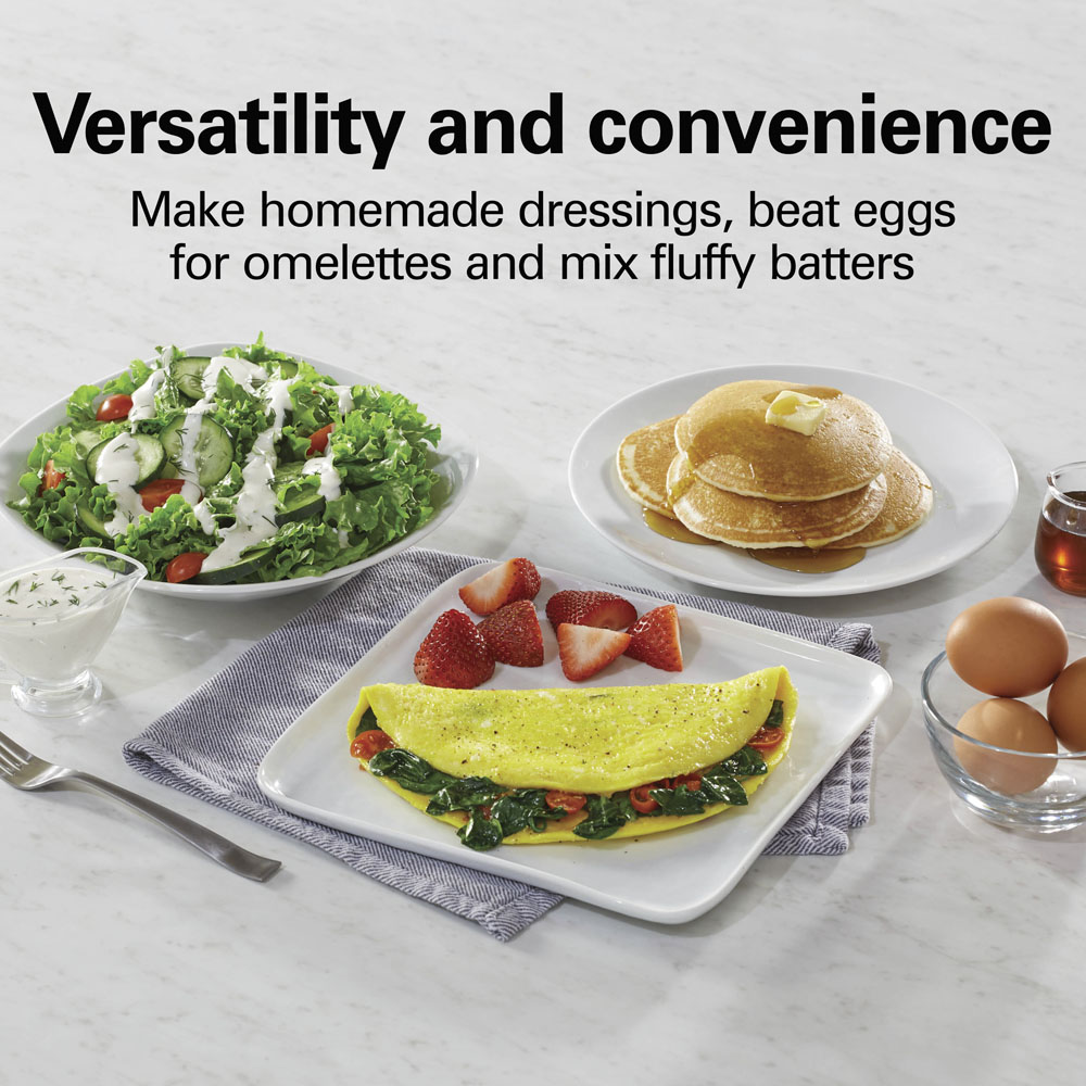 You can create way more than shakes with the Hamilton Beach drink mixer. Keep it on your countertop to make homemade dressings, beat eggs for omelets or mix fluffy batters.