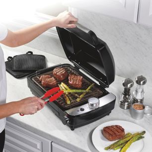 The versatile toaster oven has many convenient features and cooks 5 ways: air fry, bake, broil, toast and bagel mode.