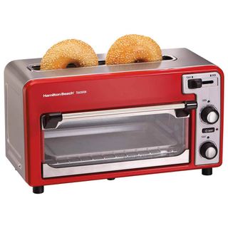 Why take up valuable counter space with a toaster and an oven, when the Hamilton Beach® Toastation® Toaster and Oven combination does it all? The top slot works like a traditional toaster with two or four extra-wide slots, and the spacious oven is perfect for pizza, French fries, chicken nuggets and more.