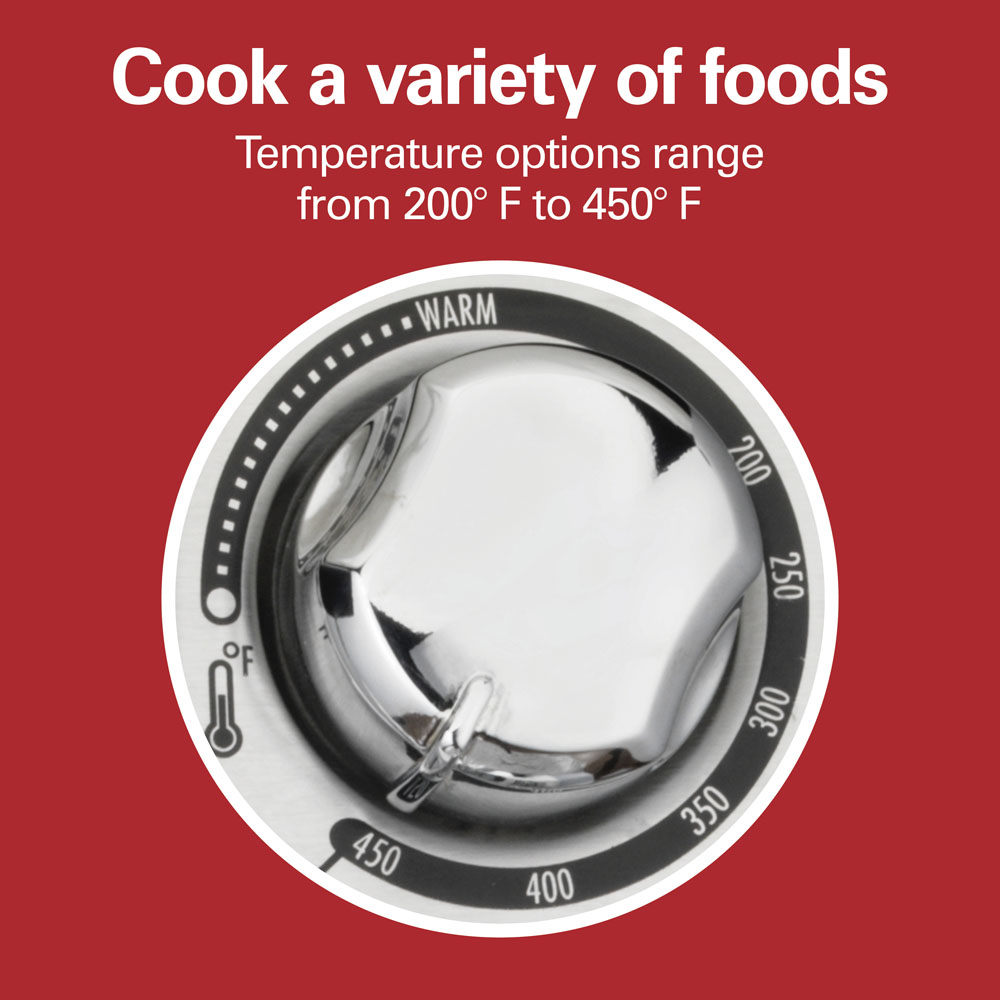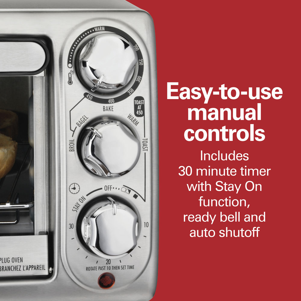 Perfectly sized to fit a 9 inch pizza, but not too big to be a countertop mainstay, the Hamilton Beach® Toaster Oven’s five cooking settings gives you the flexibility to make just about anything. Toast, bake, warm, and broil a variety of foods. You can also toast bagels to perfection – a special setting toasts just the cut side of the bagel and warms the round side.