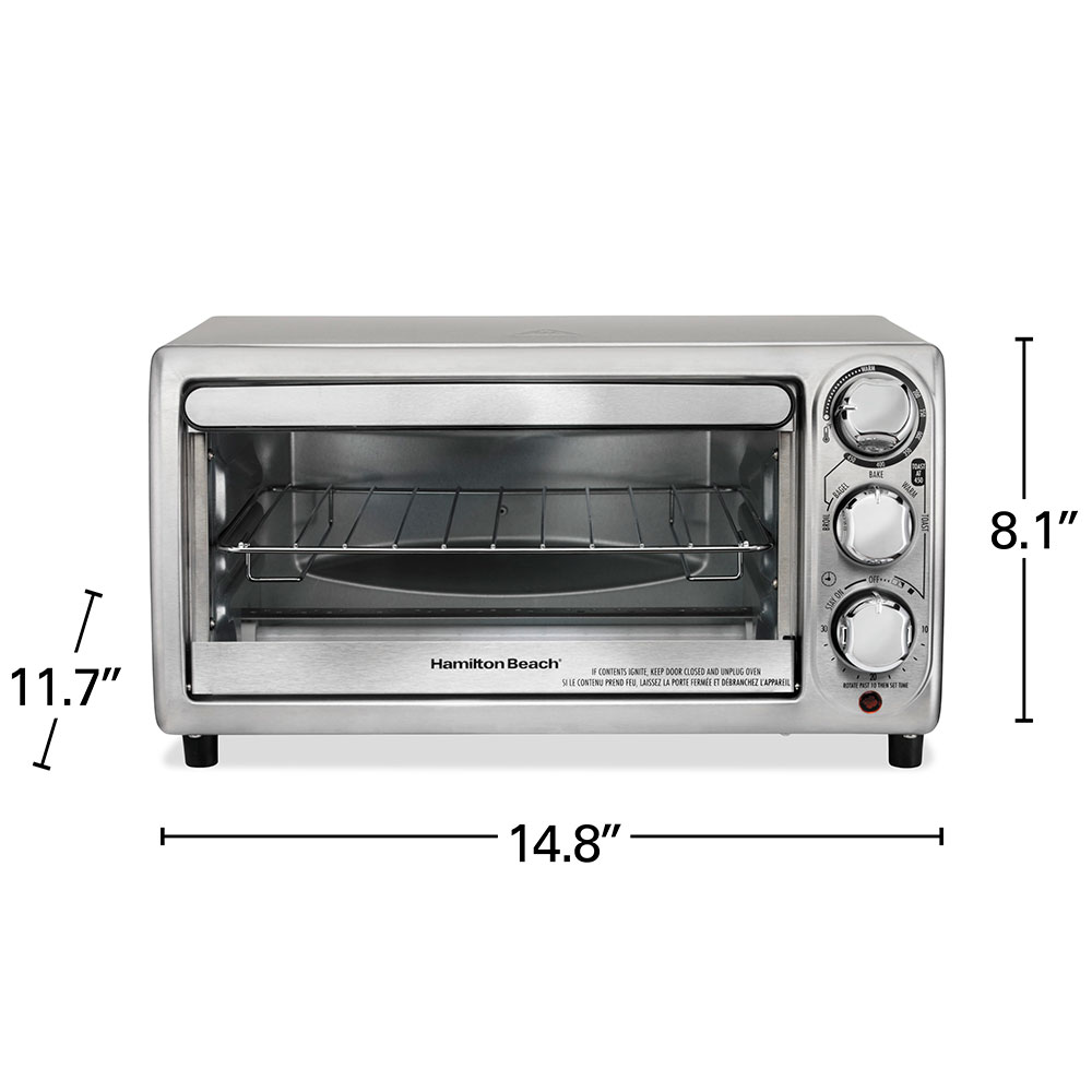 From French fries to sheet pan suppers, the Hamilton Beach® Toaster Oven can accommodate the foods your family makes for every kind of meal. It can easily hold up to 4 slices of bread and fits a 9 inch pizza.